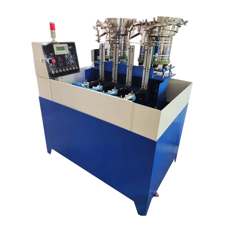फोर स्पिंडल नट टॅपिंग मशीन चालू असताना, कच्चा माल प्रथम फीडिंग ट्रेमध्ये ठेवला जातो. ते स्वयंचलितपणे चार वर्कस्टेशन्समध्ये क्रमवारी लावले जातील आणि टॅपिंग प्रक्रिया पूर्ण झाल्यानंतर, तयार उत्पादने आपोआप डिस्चार्ज होतील.