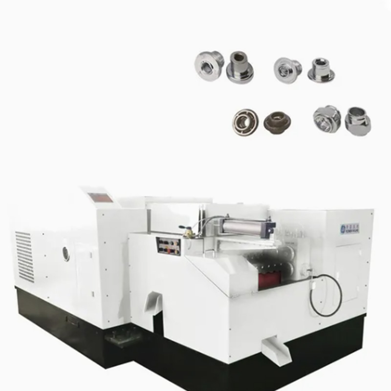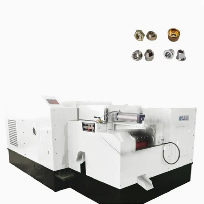 दनट फॉर्मिंग मशीनफॅक्टरीमध्ये कार्यशाळेमध्ये केवळ एक प्रकारचे नट तयार होत नाही. मोल्ड आणि टूलींग कॉन्फिगरेशननुसार, हे कॅप-आकाराचे काजू सारख्या षटकोनी काजू, चौरस नट, फ्लेंज नट आणि विशेष-आकाराचे काजू देखील तयार करू शकते. हे काजूचे मूलभूत आकार तयार करते - डोके आकार, टीप आणि चाम्फर. सहसा, थ्रेड प्रक्रिया नंतर स्वतंत्र मशीनवर पूर्ण केली जाते, परंतु काही प्रगत मॉडेल्स एकाधिक ऑपरेशन्स एकत्र एकत्र करू शकतात.