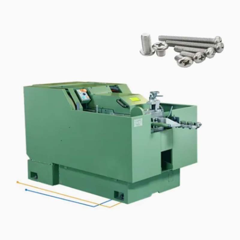 स्क्रू बनविणारे मशीन स्क्रूमध्ये वायर रोल करते. हे स्टीलचे वायर सरळ करते, लांबीने कापते, डोके तयार करते (डिस्क हेड/हेक्सागोनल हेड/ट्रस हेड) आणि धागा गुंडाळते. मूलभूत मॉडेलला ऑपरेटर आवश्यक आहे; स्वयंचलित मॉडेल फारच कमी देखरेखीसह कार्य करू शकते.